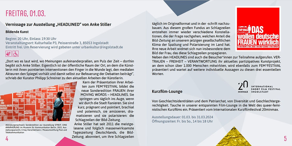 FEM*Festivalvanessascheyda19. Feb. 20241 Min. LesezeitBeim FEM*FESTIVAL der Stadt Ingolstadt werden drei Veranstaltungen in Gebärdensprache gedolmetscht.